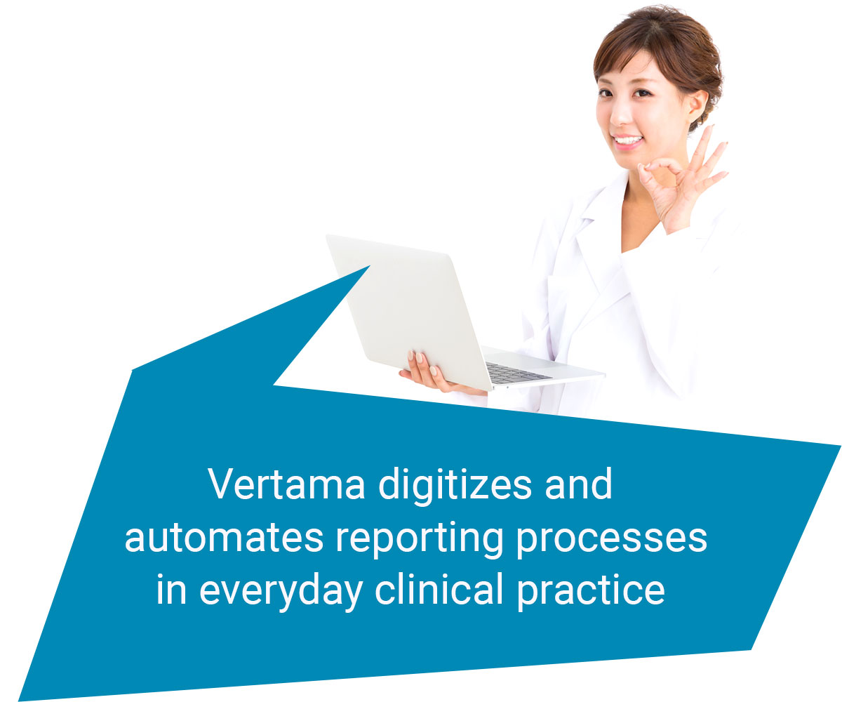 Reporting processes cost clinics a lot of time if they are carried out in analog form. Vertama develops digital products for quick and easy data collection for automated reporting. Our products are cloud-based and require neither installation in your system nor data expertise on the part of the user.
